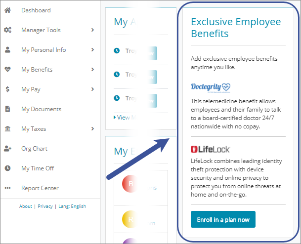 Example markdown syntax: <p style="color:#333; padding: 5px 0 10px 0;">Add exclusive employee benefits anytime you like. </p> <!--- The next two lines are for Doctegrity. Remove them if you are not offering this option --> <img src="https://www.prismhr.com/wp-content/uploads/2020/04/Doctegrity-Logo-Transparent-600x147.png" alt="Pet Insurance" width="100" style="padding-top: 5px;"> <p style="color:#333; border-bottom: 1px solid #ccc; padding: 10px 0 15px 0;">This telemedicine benefit allows employees and their family to talk to a board-certified doctor 24/7 nationwide with no copay.</p> <!--- The next two lines are for LifeLock Identity Protection. Remove them if you are not offering this option --> <img src="https://www.prismhr.com/wp-content/uploads/2019/05/EB-Portal-Enrollment-Website_for-PrismHR-002.jpg" alt="Lifelock Logo" width="100" style="padding-top: 5px;"> <p style="color:#333; border-bottom: 1px solid #ccc; padding: 10px 0 15px 0;">LifeLock combines leading identity theft protection with device security and online privacy to protect you from online threats at home and on-the-go.</p> <!--- The next line provides a link to benefit enrollment where the employee can enroll. There is no need to edit them --> <p style="margin-top: 26px;"><a href="{{ssoId.BE_ANYTIME}}" target="_blank" style="color: #ffffff; background-color: #008aad; cursor: pointer; border-radius: 4px; border: none; padding: 12px 16px 12px 16px; font-weight: bold;">Enroll in a plan now</a></p> |