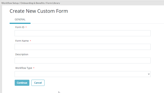 Enter Form ID, Form Name, Description, and Workflow Type. |
