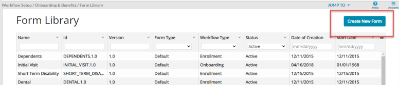 From the Form Library, click Create New Form. The Create New Custom Form displays. |