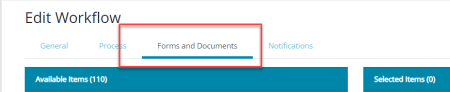 Select the forms to include in the workflow by moving them from available items to selected items. |