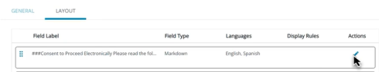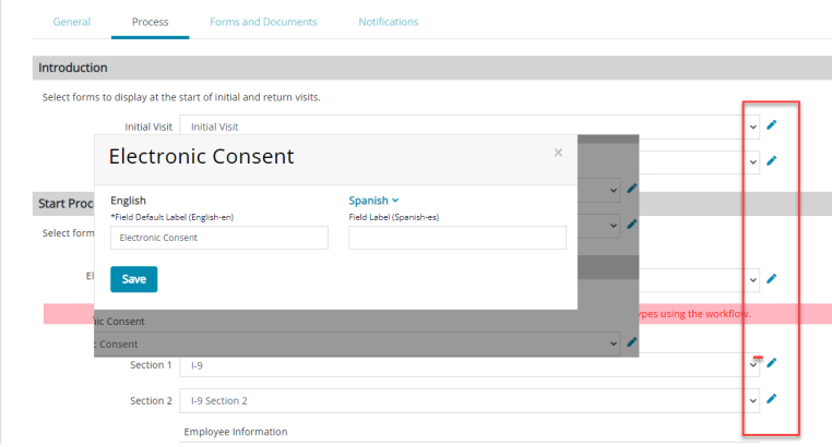 Select the pencil icons to overwrite the form in Spanish. Enter a field label in Spanish. |