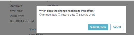 When you click in the Form Name field, the Form Name form displays, Enter Form Name in English and then in Spanish. |