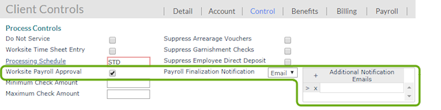 Select the Worksite Payroll Approval option to send an approval email after a payroll is calculated (initialized). |