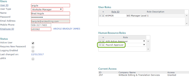 To make a user the client’s payroll approver, do the following: