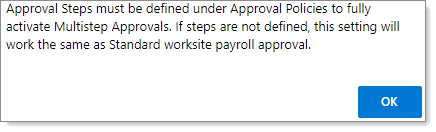 Note: For more information, see the Processing Multistep Payroll Approval task sheet in the Customer Resource Center.