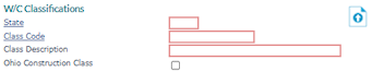 Use the W/C Classifications form to define the workers’ compensation class information for a state.